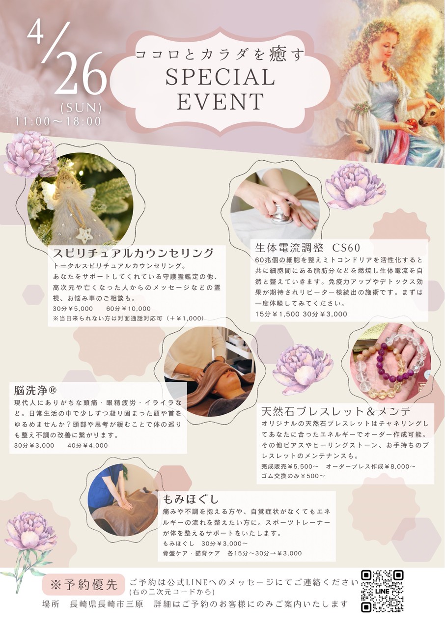 宮崎から先生をお呼びしてのスピリチュアルカウンセリングは毎回反響が多く、早い段階でご予約がほぼご予約いっぱいとなりますのでお早めにご連絡くださいませ。当日の混雑緩和のためその他もご予約いただけますと幸いです。